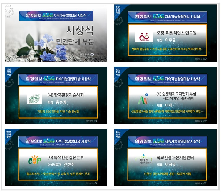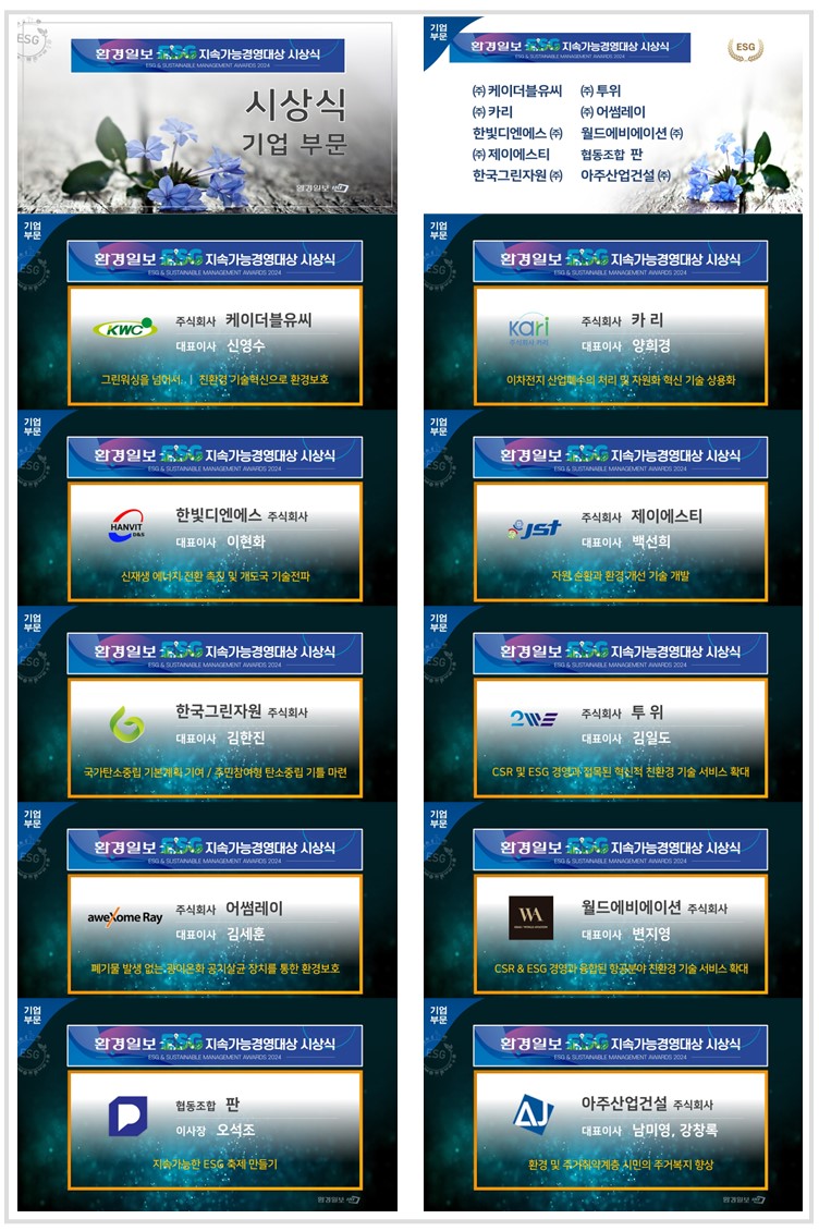 [2024 환경일보 ESG 지속가능경영대상]대한민국 지속가능한 미래 이끌 ‘ESG 경영 리더들’ - 환경