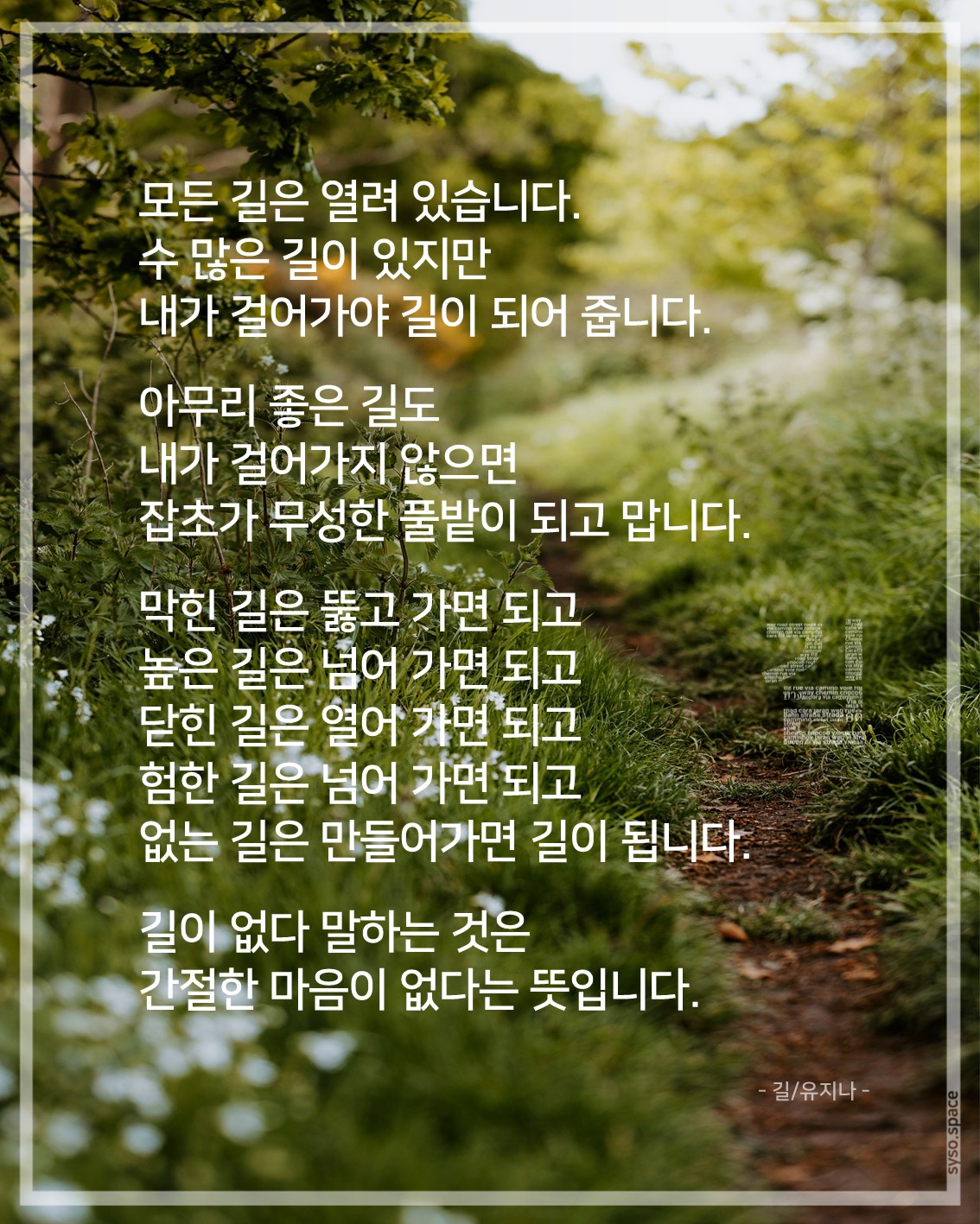 없는 길은 만들어가면 길이 됩니다.