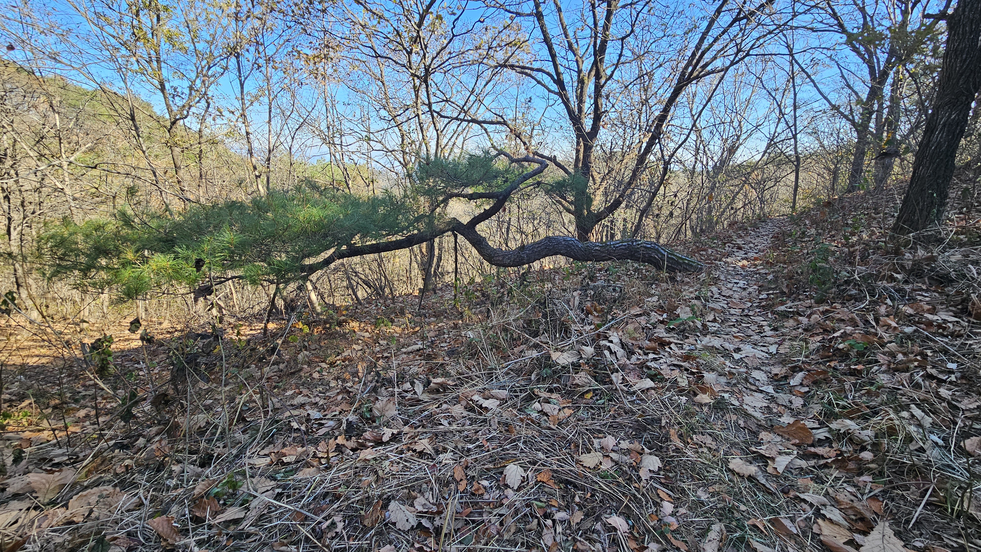 길게 누운 소나무 밑으로