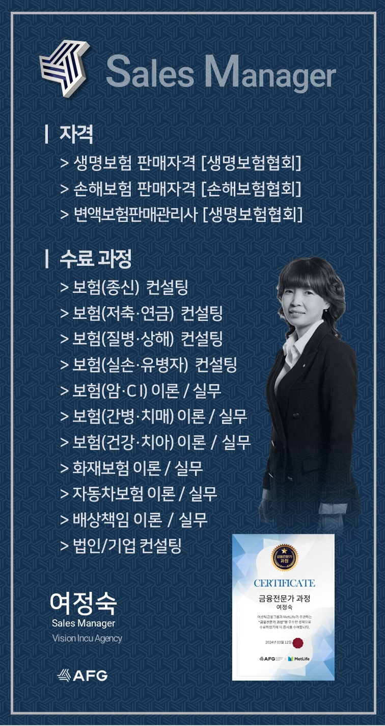 AFG Vision Incu Agency Sales Manager / 부지점장 여정숙